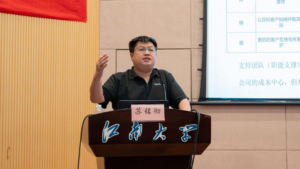 苏铭彻结合丰富的创业实践,围绕数据分析在商业模式中的价值、“研产供销服”价值链中的差异化逻辑、AI与大数据的实践分享等几个话题向同学们详细介绍了大数据在当今商业环境下的重要意义。他表示,商科学子要懂得利用AI和大数据的便捷性对商业进行智能化、数字化分析,并鼓励同学们科学规划职业发展路径,在实践中将自己锻造成为兼具商科知识与AI能力的数智时代商科人才。