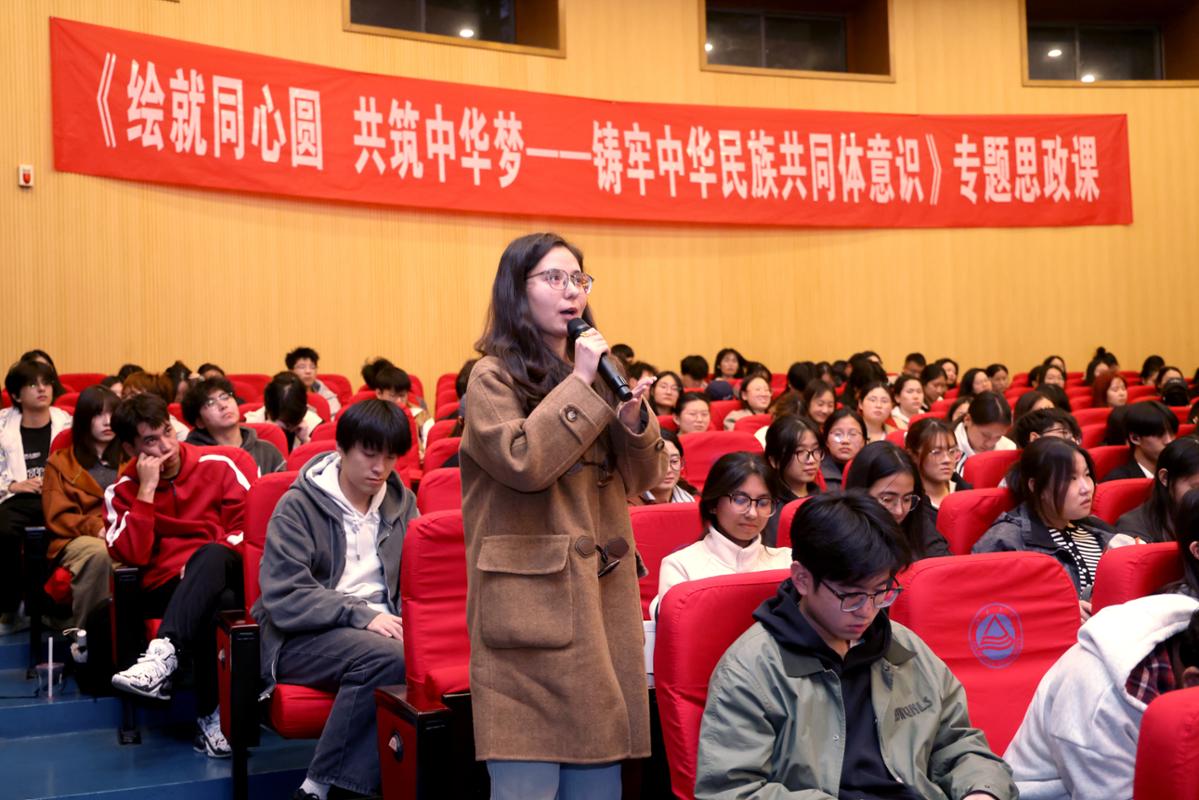 交流环节,在场学生结合自身经历,从多民族互助学习、三代人责任接力、校园文体艺术等方面,畅谈对铸牢中华民族共同体意识的认识。